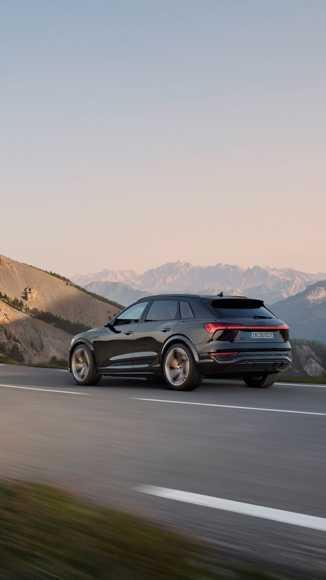 L’électromobilité grande autonomie // L’Audi Q8 e-tron circulant le long du littoral, alliant puissance électrique et raffinement sur les routes côtières